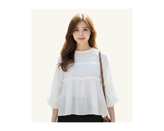 Casual Polyester Blend Round Neck Short Sleeves Ruffled Printed Gray Top (21"Inches)